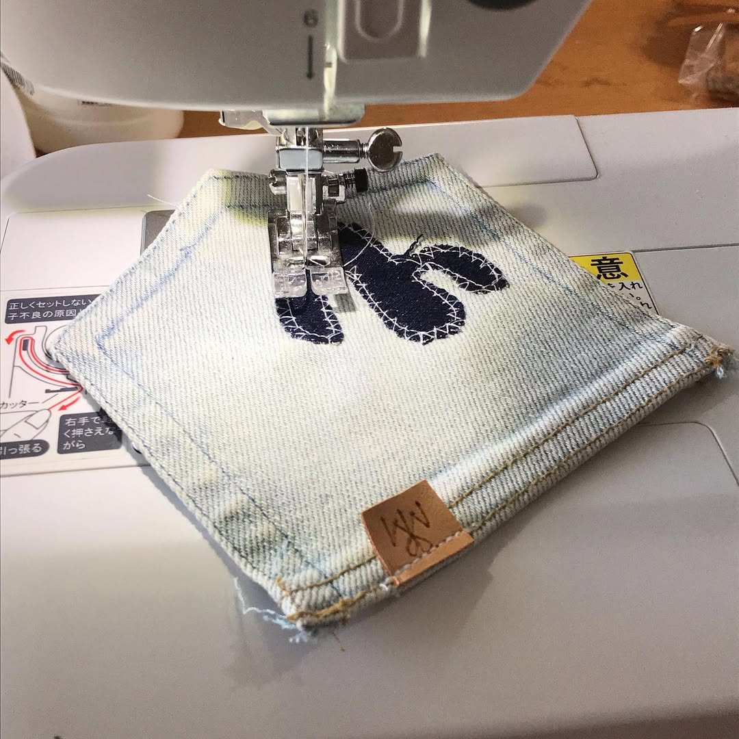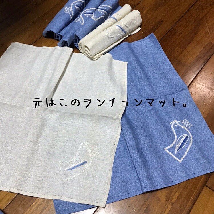 はかなくなったデニムと、無地のランチョンマットをがっちゃん子したら可愛い巾着になりました(^^)