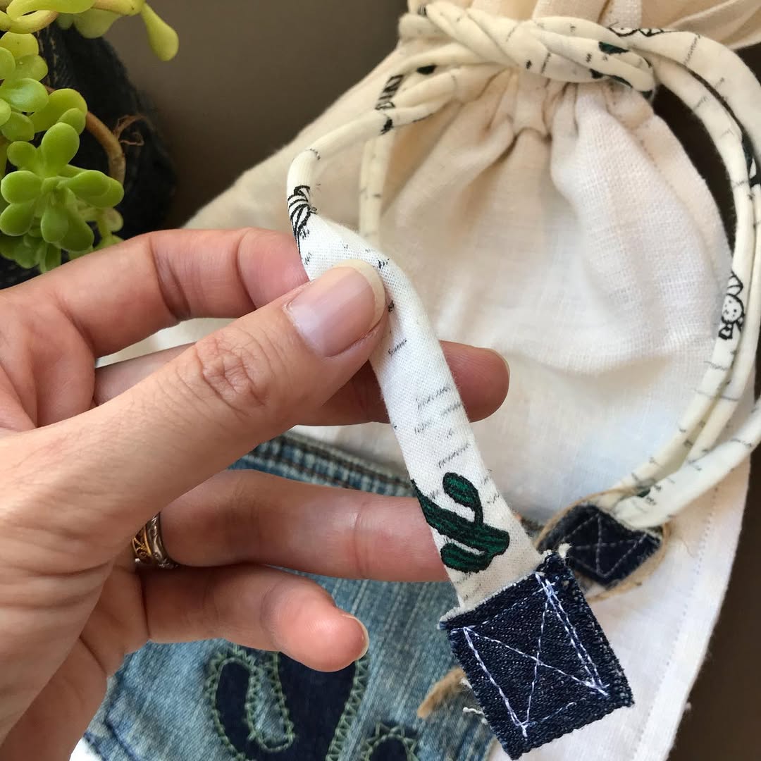 ・紐もティシャツヤーン(古着などのTシャツから生まれた布糸)で、しかもサボテン柄でっす🌵