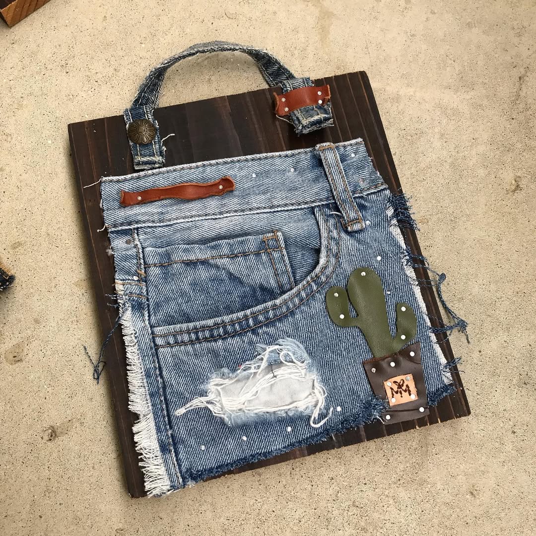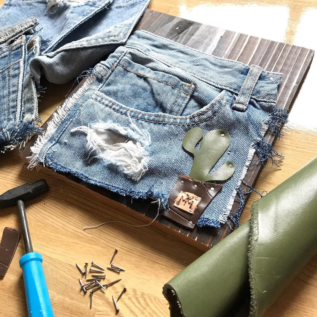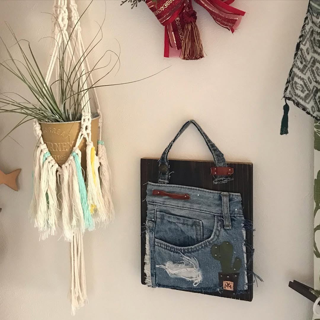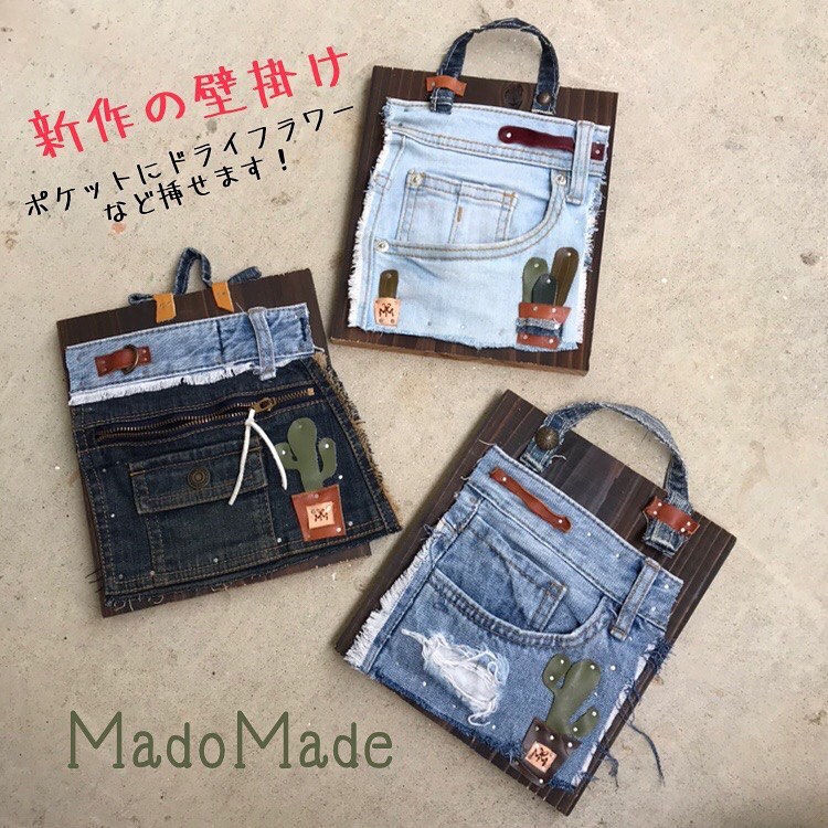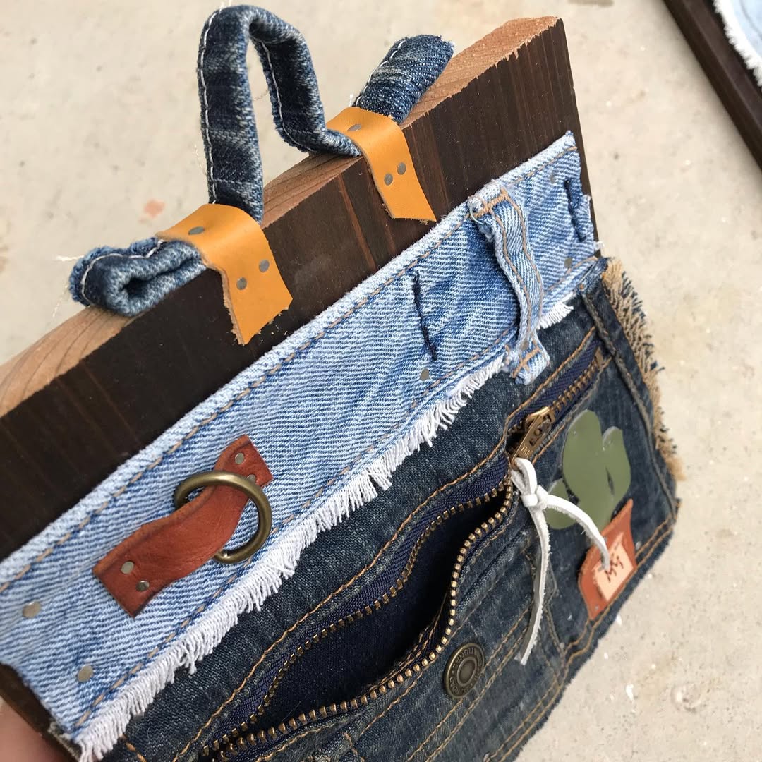 廃材×ハギレ革×リサイクルデニム×ハッピーを掛け合わせて壁掛け雑貨を制作